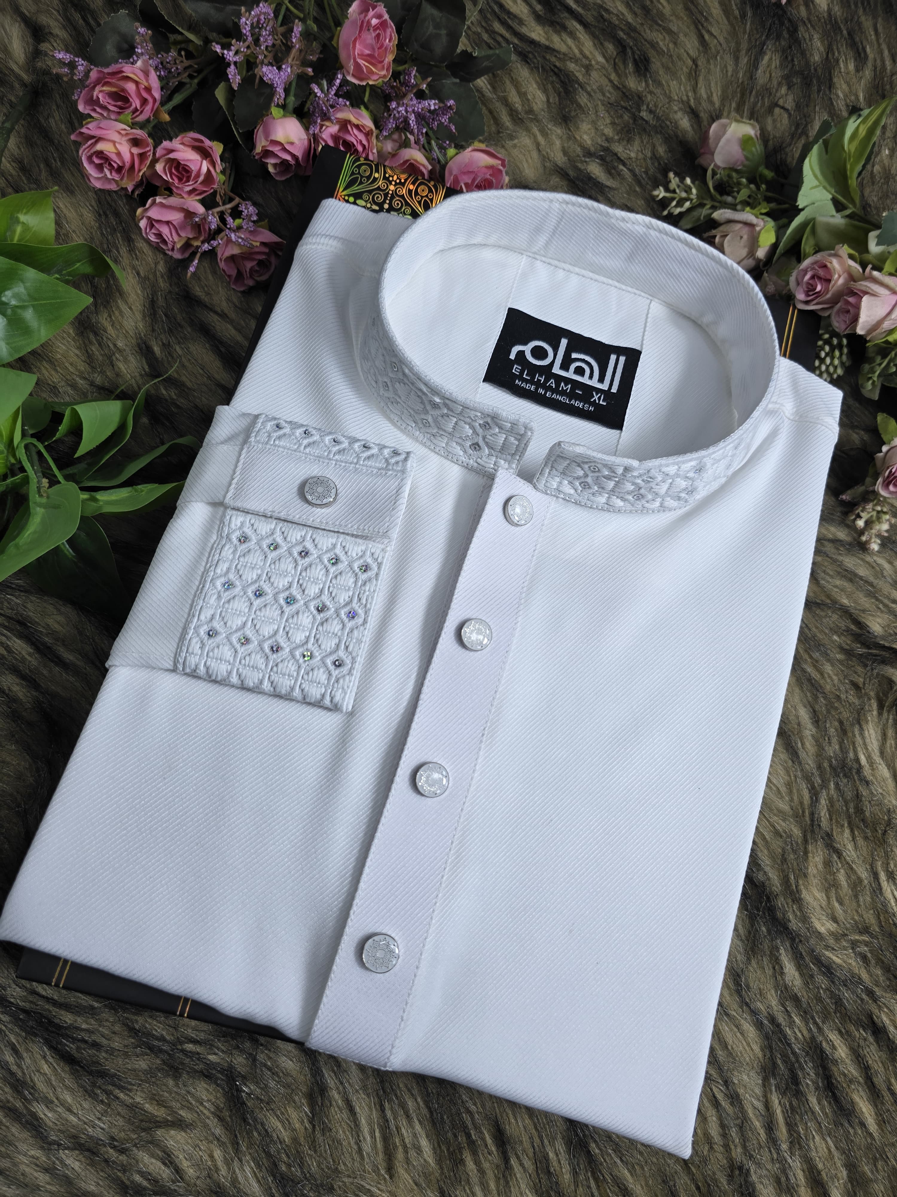 কাজ: কলার ও হাতায় নিখুঁত এমব্রয়ডারি।